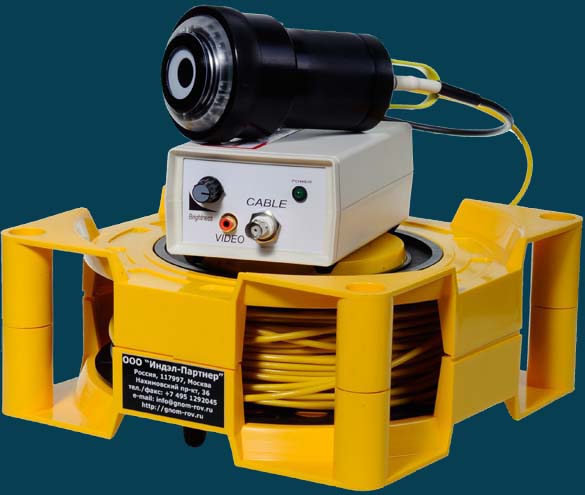 A Drop Camera subaquática GNOM é um sistema de câmera de alta resolução em cores ou preto-e-branco, com ângulo de visão padrão ou grande-angular. Ela pode ser usada para inspeções de tubulações, busca e resgate, pesca, localização de naufrágios, biologia marinha etc. A câmera também pode ser acoplada a capacetes de mergulho.